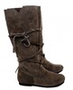Hohe mittelalterliche Stiefel aus weichem Velourleder mit stabiler Gummisohle