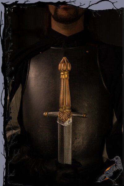 Das Duelist-Schwert von Epic Armoury ist Teil der Vanguard-Linie und orientiert sich im Design an den Langschwertern des spätmittelalterlichen Europas sowie an den Schwertern der frühen Renaissance, mit einer kleineren Parierstange und einer etwas dünneren Klinge. Der Griff besteht aus Polyurethan und ist sehr detailliert, mit einem geriffelten Griff und einer Version des Regenschutzes oder der Kante mit Blütenblattverzierung, die den Teil der Klinge neben dem Griff schützt. Der Knauf ist blattförmig und der gesamte Griff ist in der Grundfarbe schwarz gehalte. Die Klinge besteht aus geschlossenzelligem Polyurethanschaum und ist so gefärbt, dass sie möglichst naturgetreu aussieht. Im Gegensatz zu den meisten LARP-Waffen erfordert die Vanguard-Reihe praktisch keine Wartung, außer der Überprüfung auf Abnutzung in Form von Schnitten oder Brüchen.
