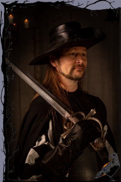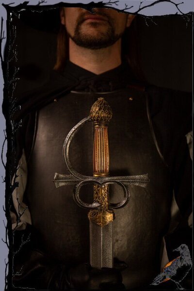 Das Rillet Rapier von Epic Armoury ist Teil der Vanguard-Linie und orientiert sich im Design an den Rapieren der Renaissance. Während die meisten Degen über eine dünne Klinge verfügten, ist diese eher wie die Degen gestaltet, die traditionell für Schlachten und Kriege verwendet werden, als wie die Zierklingen der Höfe Europas. Der Waffenschutz ist so konzipiert, dass er sowohl die Oberseite der Hand (wie eine normale Parierstange) als auch die Finger schützt, wie dies bei einem normalen Korbgriff der Fall wäre. Der Griff ist gerillt, um den Halt des Trägers zu verbessern, während die Form (oder der Regenschutz) innerhalb der Parierstange angebracht ist und mit Gravuren versehen ist, die wie kriechende Ranken aussehen. Ebenso weist der Knauf rund um den Globus passende Gravuren auf, die zur Kante passen. Die Klinge besteht aus geschlossenzelligem Polyurethanschaum und ist so gefärbt, dass sie möglichst naturgetreu aussieht. Im Gegensatz zu den meisten LARP-Waffen erfordert die Vanguard-Reihe praktisch keine Wartung, außer der Überprüfung auf Abnutzung in Form von Schnitten oder Brüchen.