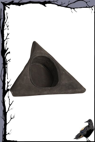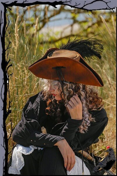 Der Dreispitz ist aus echtem Leder gefertigt und somit langlebig. Das Leder verleiht Form und Struktur und behält seine Form, während es gleichzeitig geschmeidig und bequem bleibt, um es den ganzen Tag lang bei LARP-Events, Festivals oder auf der Bühne zu tragen. Mit der Zeit wird das Leder weicher und erhält Falten und charakteristische Spuren, die von Ihrer Vergangenheit und Ihrem Kostüm erzählen.