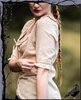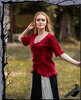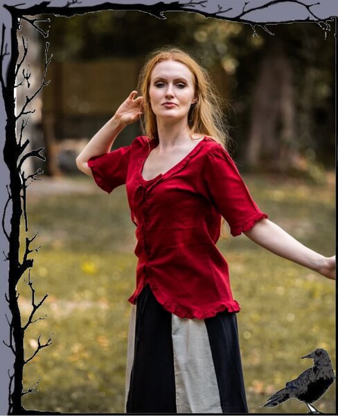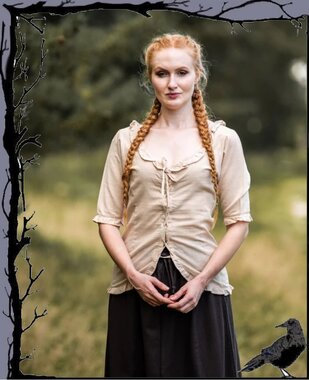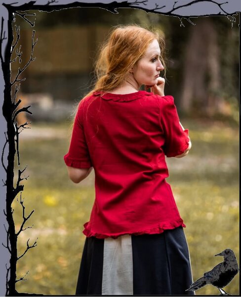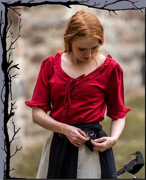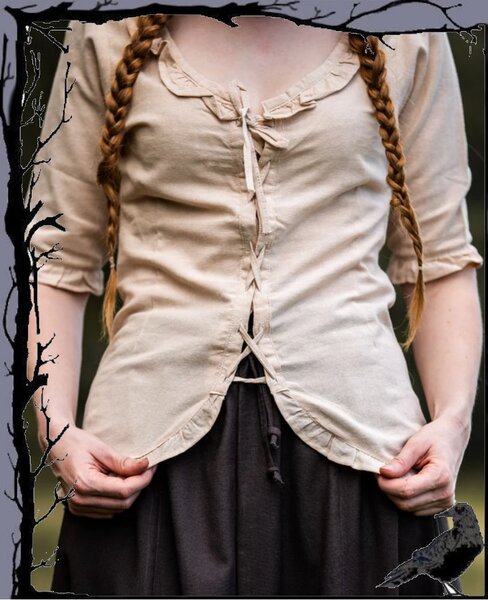 Schöne Bluse im mittelalterlichen Stil mit Vorderschnürung und verzierende Rüschen.