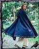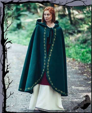 Ein wünderschöner mittelalterlicher Wollumhang mit grazieler Stickerrei und langer Kapuze