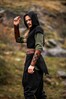 Der Gürtel Torben aus Leinen ist mehr als nur ein Accessoire, er ist Dein treuer Begleiter auf all Deinen epischen Abenteuern. Mit einer beeindruckenden Länge von 285 cm und einer Breite von 11 cm bietet dieser Stoffgürtel genügend Spielraum, um ihn mehrfach um die Taille zu wickeln. Die matte, leicht grobe Webstruktur verleiht ihm einen rustikalen Charme, der perfekt in die Welt des Mittelalters und Wikingerzeit passt. Der natürliche Fall des Stoffes ermöglicht es Dir, Volumen und Struktur zu kreieren, während das weiche Material angenehm auf der Haut liegt.