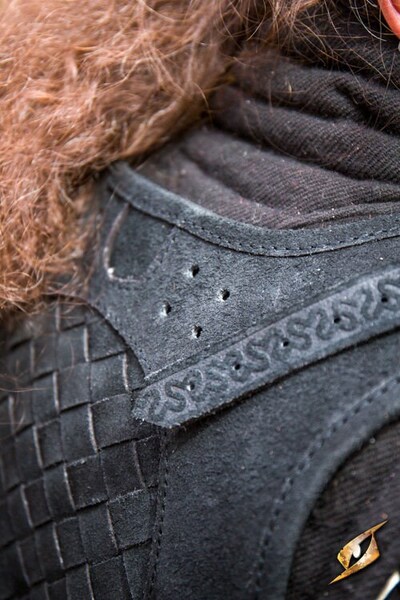Die Ranger-Wildleder-Torso-Rüstung von Epic Armory ist ein Kürass aus chromgegerbtem Leder mit einem schlichten Rahmen mit einem diagonalen Gewebe an der Vorder- und Seite. Es wird mit Zierbändern zusammengehalten, die für eine angenehme Passform angepasst werden können. Obwohl diese Rüstung so konzipiert ist, dass sie zu anderen Teilen des Ranger Complete Armor Set passt, kann sie mit Komponenten aus verschiedenen Sets kombiniert werden, um ein einzigartiges Aussehen zu erzielen. Diese vielseitige Rüstung eignet sich perfekt für diejenigen, die von der Wikinger-, Kelten- oder Mittelalterära Europas inspiriert sind.