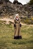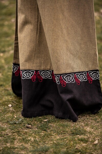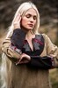 Das Damen Wikinger Kleid Idun ist ein wahrhaft faszinierendes Kleidungsstück, das Dich auf Deinen epischen Abenteuern begleitet. Mit seiner langen, fließenden Silhouette und dem V-Ausschnitt zieht es alle Blicke auf sich. Die kunstvolle Handstickerei, die sich sowohl am Ausschnitt als auch an den weiten Manschetten und dem Saum wiederfindet, zeugt von meisterlicher Handwerkskunst. Dieses Detail verleiht dem Kleid einen Hauch von Eleganz und Mystik, während der leicht ausgestellte Saum für eine charmante und feminine Note sorgt.