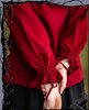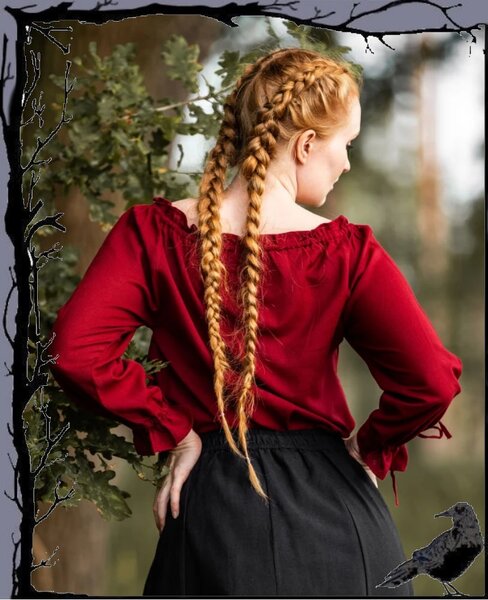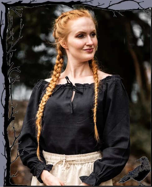 Bluse im mittelalterlichen Stil. Die langen Ärmel enden in schlichten Bündchen.