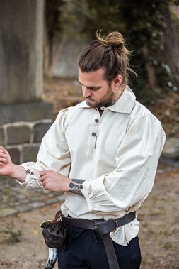 Schönes Piratenhemd mit Kragen und Holzknöpfen am Dekolleté und Ärmel.