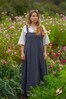 Das Frida-Kleid stammt von den Nordmännern und den Wikingern. Er folgt dem Hangarok-Stil des frühen Mittelalters in Nordeuropa. Es wurde aus Baumwolle mit Fischgrätmuster hergestellt, was ihm eine schöne Dicke und ein schönes Gewicht verleiht. Eine Bluse oder Hemd sollte darunter getragen werden, um ein authentisches und bequemeres Erlebnis zu erzielen. Die Schultergurte wurden so gestaltet, dass sie mit etwas Handarbeit leicht modifiziert werden können. Das Frida-Kleid ist für jeden geeignet, vom Bürgerlichen bis zum Adel, da es mit Broschen und Schmuck verziert werden kann und jede Schicht gut ergänzt.