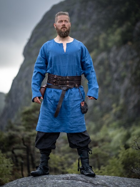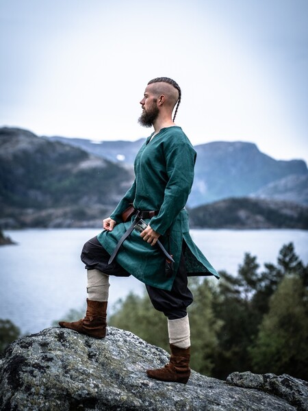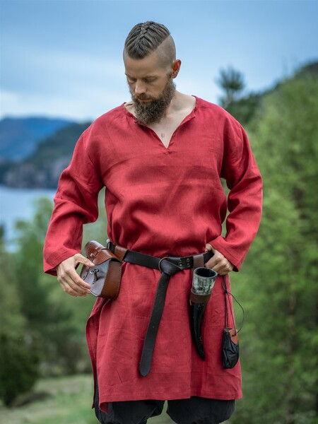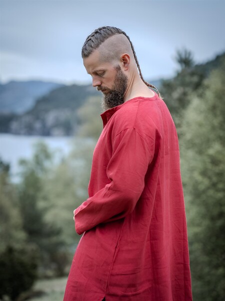 Die Wikinger Leinentunika Halvar ist inspiriert von den historischen Designs der Nordmänner. Im Mittelalter waren Tuniken ein unverzichtbares Kleidungsstück für den Alltag, das sowohl Komfort als auch Schutz bot. Diese schlichte und dennoch elegante Tunika spiegelt die robuste Einfachheit wider, die für die Kleidung der Wikinger charakteristisch war.