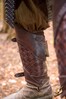 Die Ranger Greaves Rüstung besteht aus Vollkornlederbändern und ist miteinander verwoben, um unter einem Vollkornlederrahmen ein wunderschönes Design zu schaffen. Robuste Lederriemen und Messingschnallen sichern die Panzerung am Bein.