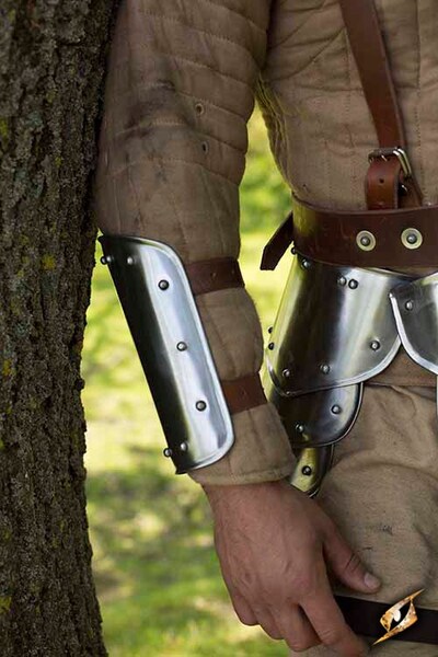 - Anders als allgemein angenommen wurde der Armschutz nur dann als “bracer” bezeichnet, wenn er den Unterarm eines Bogenschützen schützen sollte. Ein tatsächlicher Unterarmschutz wie dieser hätte man “vambrace” oder “Unterarmschutz genannt.”