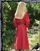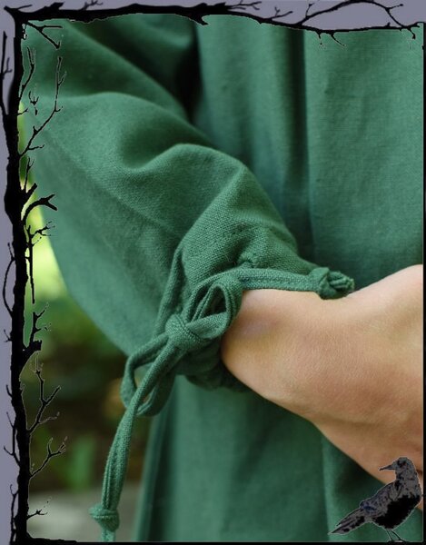 Das locker geschnittene Mittelalter-Kleid hat seitlich eingesetzte Geren und ist bodenlang. Geren sind keilförmige Stoffstücke, die der Gewandung im Mittelalter ihre großzügige Saumweite gaben.