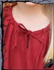 Der geraffte Ausschnitt ist einem archäologischen Fragment aus Pskow (auch Pleskau), Russland, nachempfunden, welches zu einem auf das 10. Jh. datierten Wikingerkleid gehört. Er ist in der vorderen Mitte mit einem Schlitz versehen und kann durch ein Bändchen reguliert werden. Die Ärmelsäume können ebenfalls durch Bändchen gerafft werden.