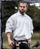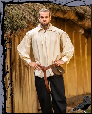Wunderschönes mittelalterliches Hemd mit Kragen. Abgerundet wird das Bild durch einen Holzknopf am Kragen.