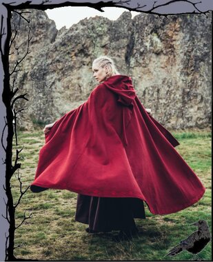Umhang mit langer Kapuze und handgem. Stickerei. Länge 131 cm, Stoffweite 231 cm.