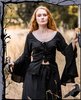 Hübsche, vorn gebundene, Damenbluse aus Viskose. Die großen Fledermausärmel lassen sich raffiniert, mittels von Bändern anbringen oder abnehmen.